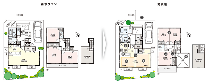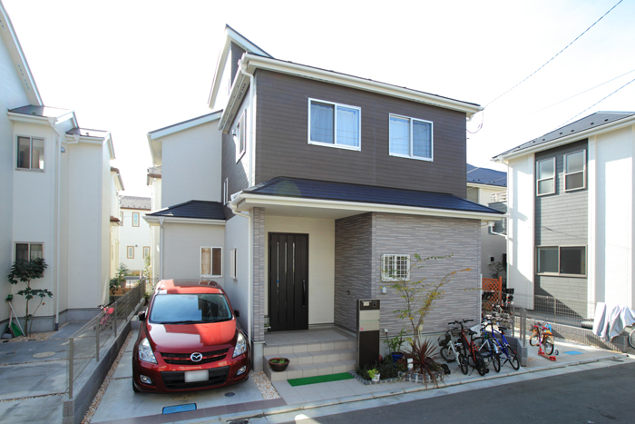他社建売住宅 VS 想造邸宅。負けられない戦いがそこにはあった。「主人が気に入っていたのはオシャレな建売住宅で私は想造邸宅。どんなにオシャレでも建売住宅は皆同じで個性もないし、仮に建て替えをすることになった場合、周りの家との協調性とか考えていかないといけないのかなと思うとどうかと。その点、想造邸宅は自由度が高いし個性を出せる」と奥様。最後は奥様の熱い気持ちにご主人も納得し想造邸宅を選択。かくゆうM様は今回が2回目のマイホーム購入。マンションの売却と下のお子さんが小学校に上がるタイミングに合わせて一戸建てを検討。ご主人の勤務先から半径12km圏内のエリアに絞って吟味を重ねながらようやく「理想を叶えるマイホーム」にたどり着いた。「頭に描いていた叶えたいことを全て伝えた」というご夫婦。「設計の飯田さんから、『全部入れてみました』と言われびっくり(笑)」。リビングイン階段、L型キッチン、玄関とキッチンから洗面所へ行ける2Wayの動線、シューズインクローク、2階の間仕切り、吹き抜けなど、居住空間を最大限に活かせるように「タテ」と「ヨコ」の空間を上手に繋ぎ、機能的なレイアウトを実践!