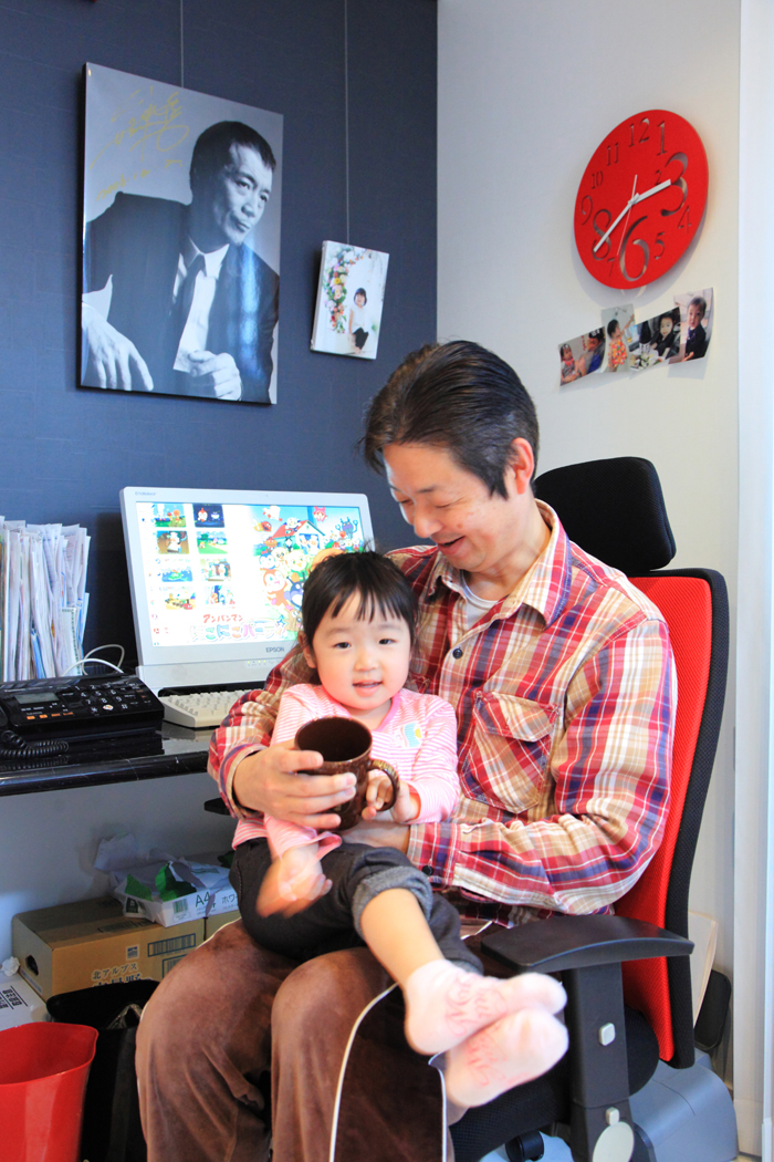 「手前味噌ですが、想造邸宅は2世代といわず4世代の家族7人が同じ屋根の下でバランスよく暮らすことも可能です」と話すのは、なにを隠そう兼六ホーム㈱営業部の井原課長代理。「きっかけは皆さんと同じように、結婚して2人目の子供が出来た時にマイホームを考えました」と井原氏。「自社の分譲地を色々検討していた時に、家内の両親の家の建替えの話が出て『それならその土地に想造邸宅を建てよう』ということになって」と購入を決断した。「皆さんと違うのは4世代の家族が7人いること。同じ屋根の下で家族全員で集まる空間とプライベートな個の空間をバランスよく表現したかった」というテーマのもと様々な工夫を凝らしていった。ご両親と101歳のおじいちゃんが暮らす1階はLDKを中心に無駄のない動線を確保。地下の床下収納庫(7帖)を設置し収納面を充実させた。一方ご自身の家族が暮らす2階は、壁面収納や食品庫などを予め設置し、大容量のLDKを設置。3階は子供2人が独立した部屋を持つことが出来るように3部屋を確保。スカイガーデンも採用。