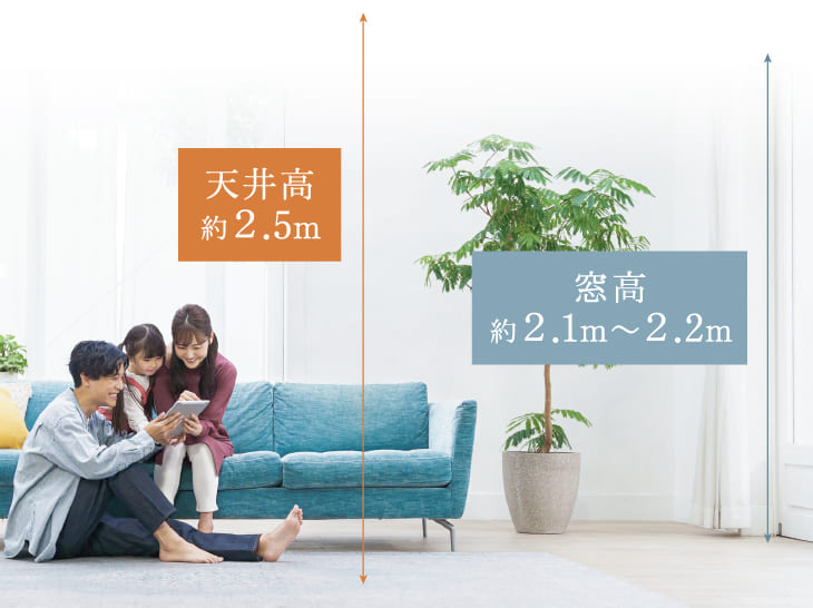 - 明るい光を取り込む2.2m高の掃き出し窓