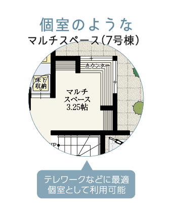 リビング横のマルチスペースは、テレワーク等に便利な個室として使えます。