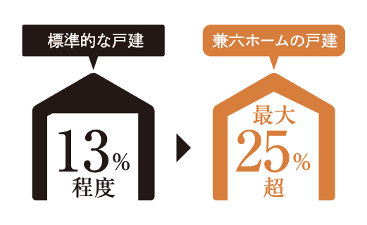 兼六ホームではプランニングの工夫により、常に高い収納率を実現。高収納率の邸宅にすると、収納家具が減り、広い居住空間を確保することが可能になります。