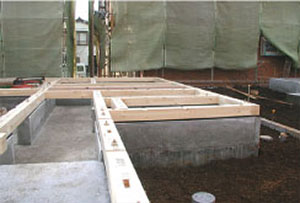 建物をしっかりと支えるための基礎構造。上部構造(建物)を安全に支持するのはもちろん、その重量による沈下や傾斜を防ぐ基礎。「べた基礎」においては、床下に敷き詰めた鉄筋コンクリートが面で建物を支えるので信頼性充分。太さ13mm及び10mmの鉄筋を間隔200mmで網状に組み、堅牢性を一層向上させています。