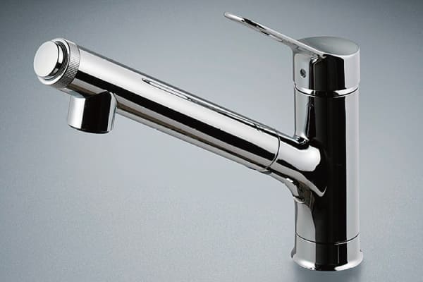 ハンドシャワー水栓 - 浄水機能内蔵の多機能水栓。ヘッドが引き出せるので、シンクの隅々までキレイに。またポットや鍋への注水等にも便利。
