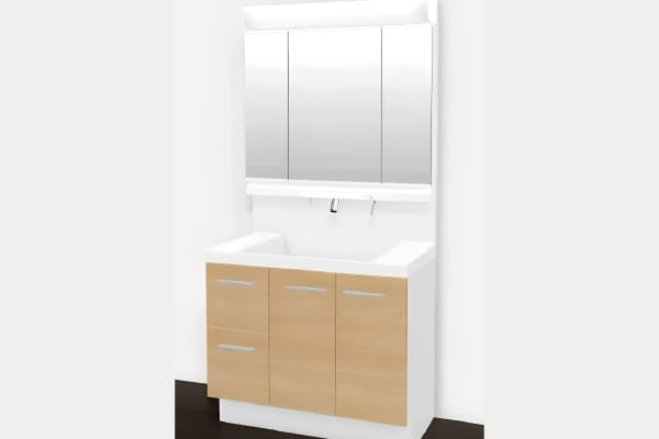 &LED照明付洗面化粧台 - お掃除に便利なハンドシャワーに加え、大型鏡裏収納、大容量ボウルで使い勝手よく。