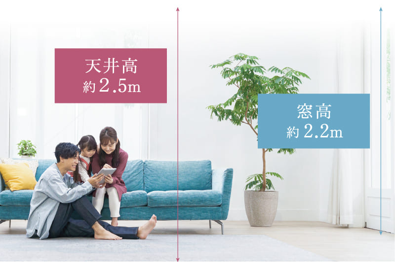 - 明るい光を取り込む2.2m高の掃き出し窓