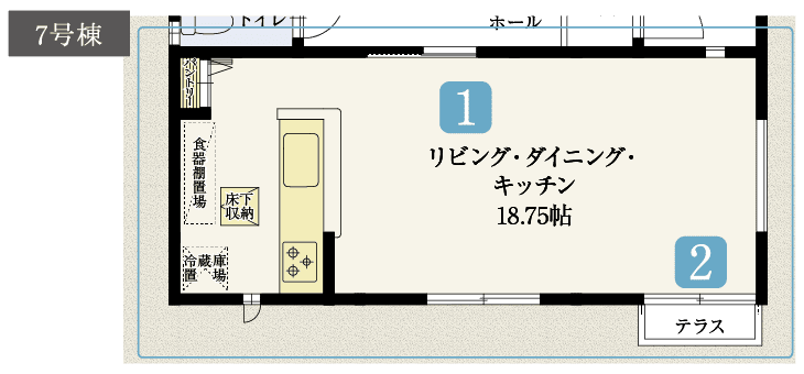 - 18.75帖の広々としたリビング・ダイニング・キッチン