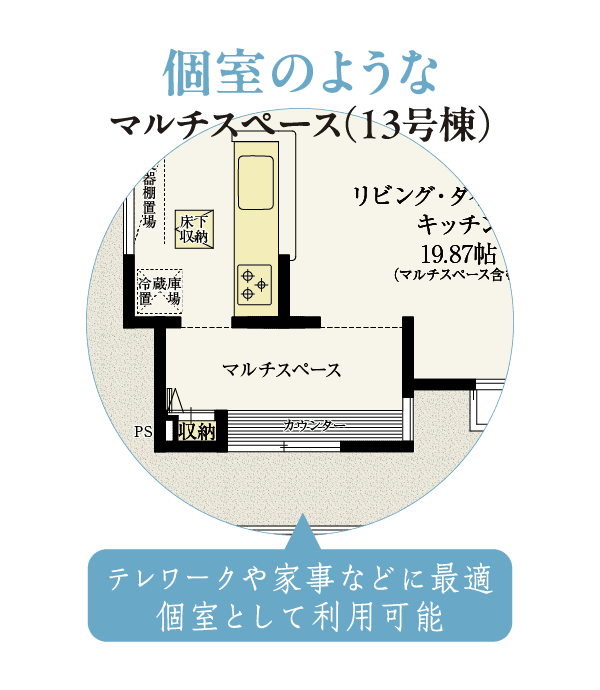 マルチスペースやカウンターで広がる利便性