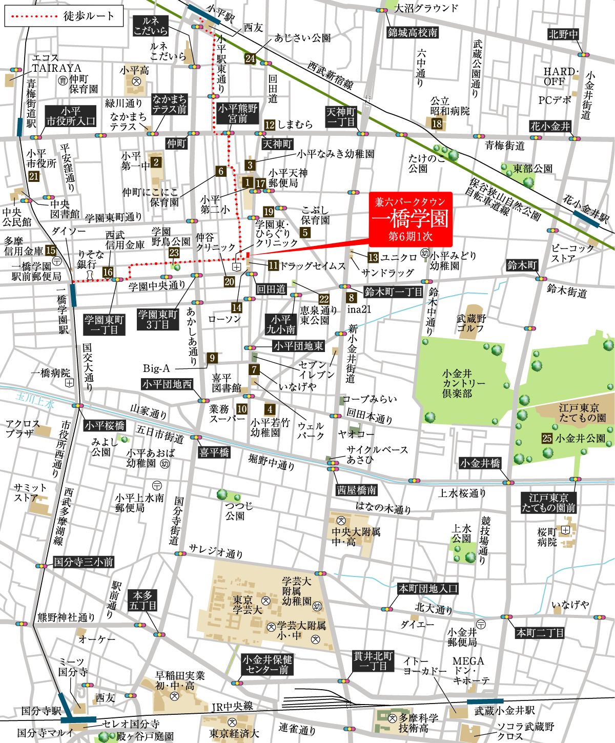 ※徒歩分数、距離は現地を起点とし、80mを1分として概算です。