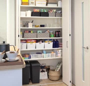 キッチンの近くで保存食料や食器などが増えても効率的な出し入れが可能なパントリーや、