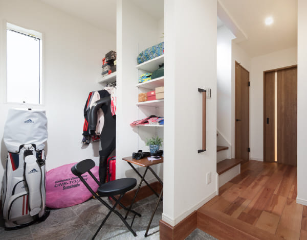 マリンスポーツ用品など趣味のグッズ置場としても活用できるスペースです。