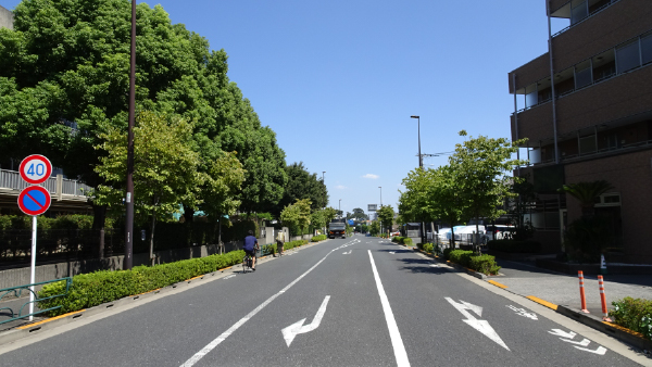 文理台公園前や明保中学校前を彩る美しい並木道を眺めながら駅前へ。