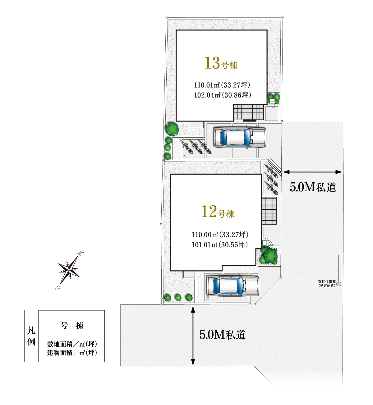 〈図面集をご覧になるにあたって〉●帖数はすべて1帖を約1.652562㎡として算出しています。●坪換算は1㎡/0.3025坪で小数点第3位以下は切り捨てて表示しています。●各間取図の寸法につきましては、設計図書にてご確認ください。 ●外構および植栽は、施工上の都合により変更となる場合もありますのでご了承ください。※図面と現況が異なる場合は、現況優先といたします。※お客様のご希望により建築基準法の範囲内で間取り仕様等を変更する場合があります。予めご了承ください。