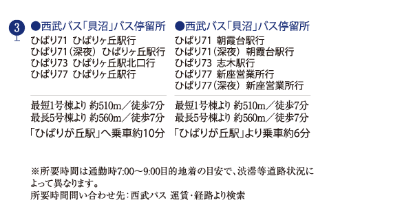(15~17分)西武池袋線急行利用。(日中時も同)