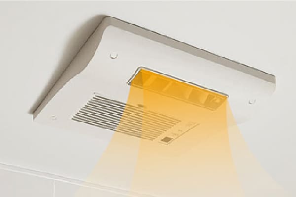 参考写真 - 浴室内で洗濯物を乾かせる乾燥機能で雨の日も快適。寒い時期には暖房機能で、入浴前に浴室を暖められて室内との温度差を解消します。