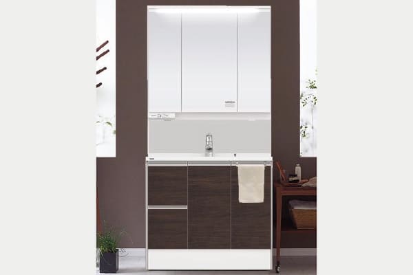 参考写真 - ハンドシャワー付の洗面化粧台。大型収納ミラー、大容量ボール、タオルクリップを装備。