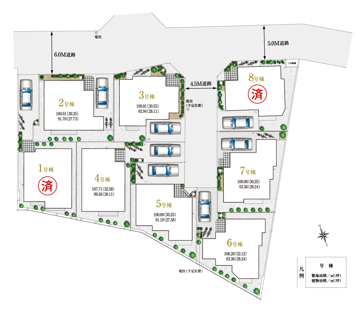 〈図面集をご覧になるにあたって〉●帖数はすべて1帖を約1.652562㎡として算出しています。●坪換算は1㎡/0.3025坪で小数点第3位以下は切り捨てて表示しています。●各間取図の寸法につきましては、設計図書にてご確認ください。 ●外構および植栽は、施工上の都合により変更となる場合もありますのでご了承ください。※図面と現況が異なる場合は、現況優先といたします。※お客様のご希望により建築基準法の範囲内で間取り仕様等を変更する場合があります。予めご了承ください。